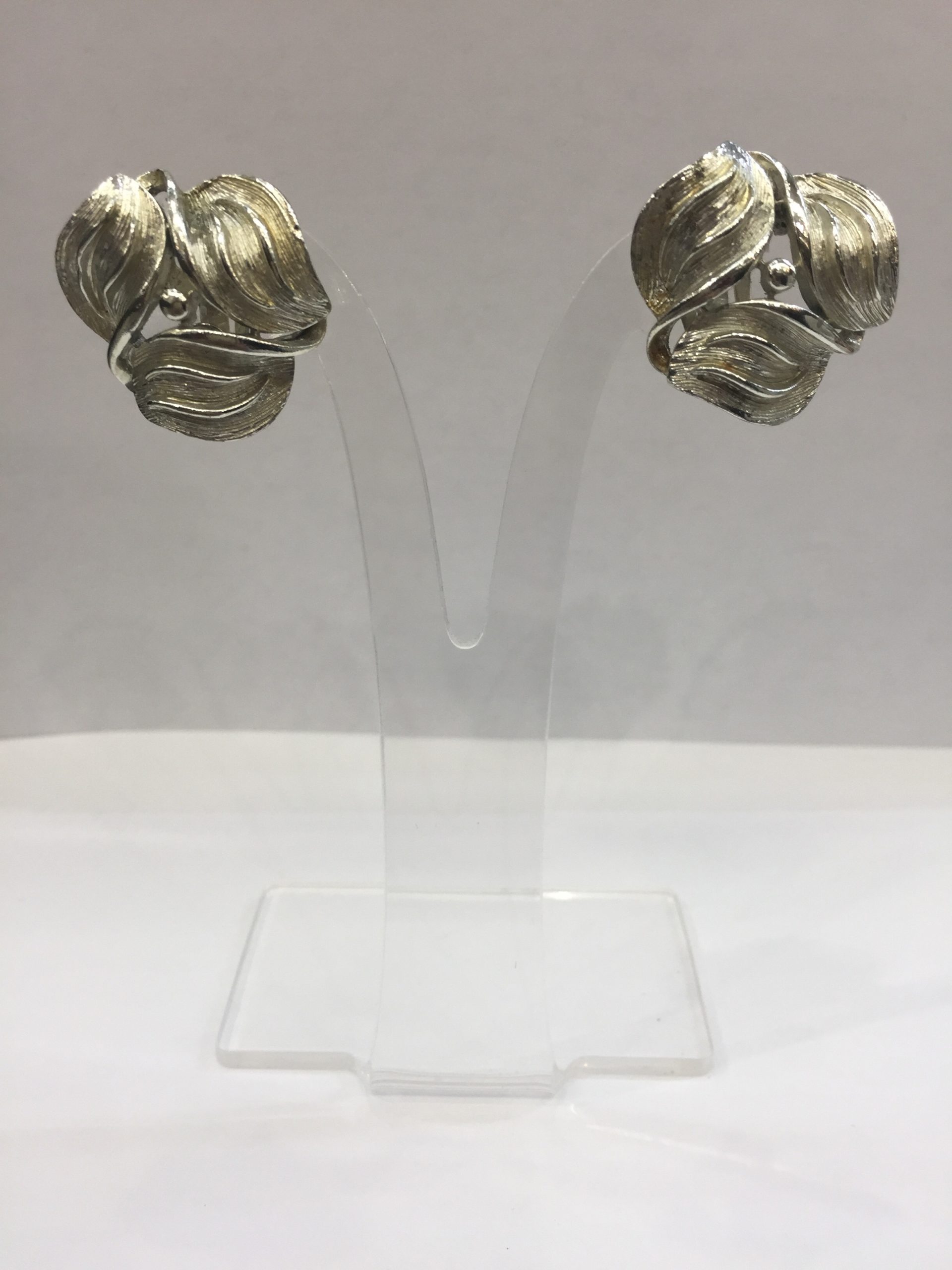 Ladies White Leaves, Button Style, Signed Coro Earrings.