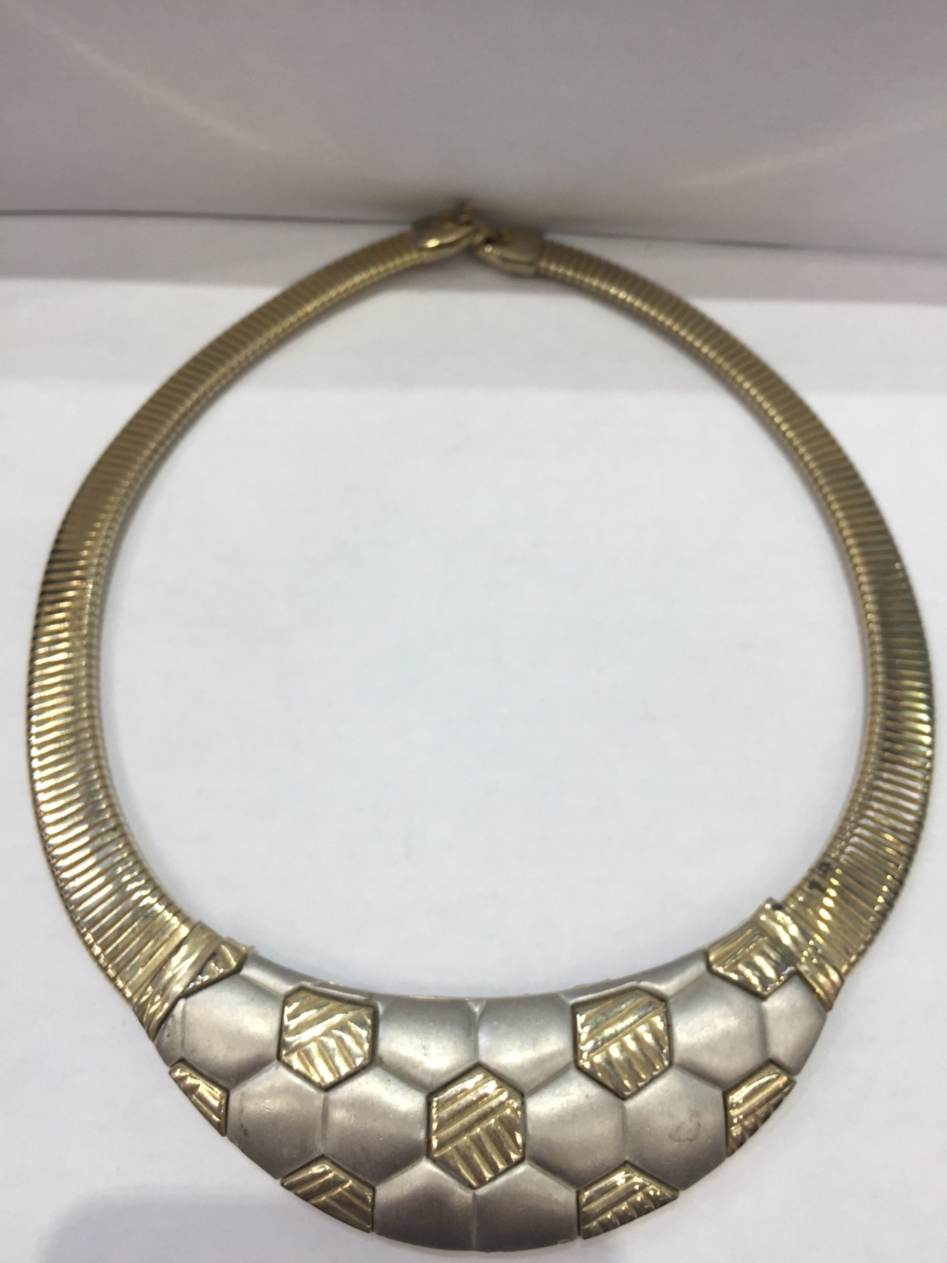 Ladies Twotone, Ribbed Choker, With Hexagon Pattern. 16 Inches.