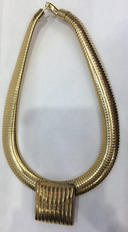 Ladies Yellowtone, Gooseneck Choker, With Square Fluted Center. 14 Inches.