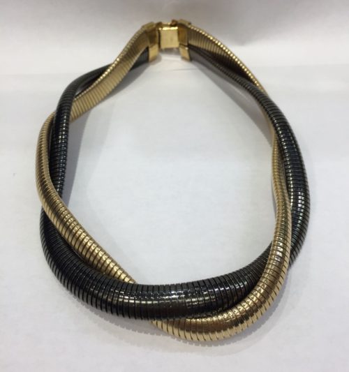 Ladies Yellow And Blacktone Twist Gooseneck Choker. 15 Inches.