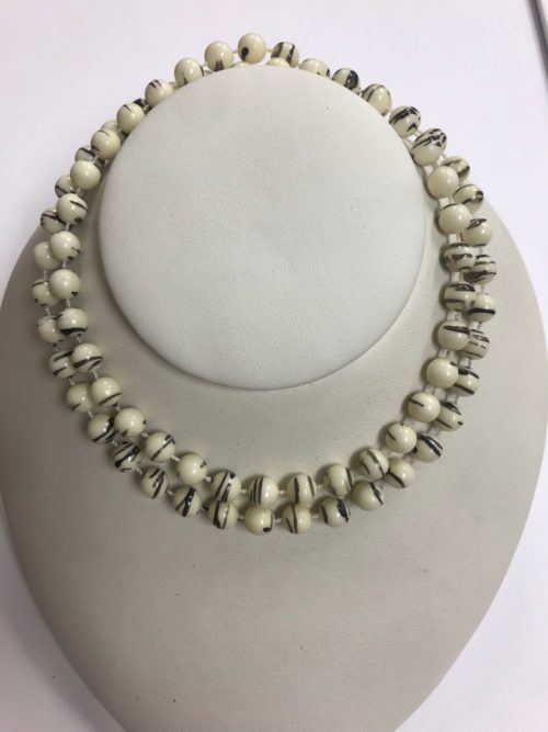 Ladies Ivory, Black, Glass, Beaded Necklace.30 Inches.