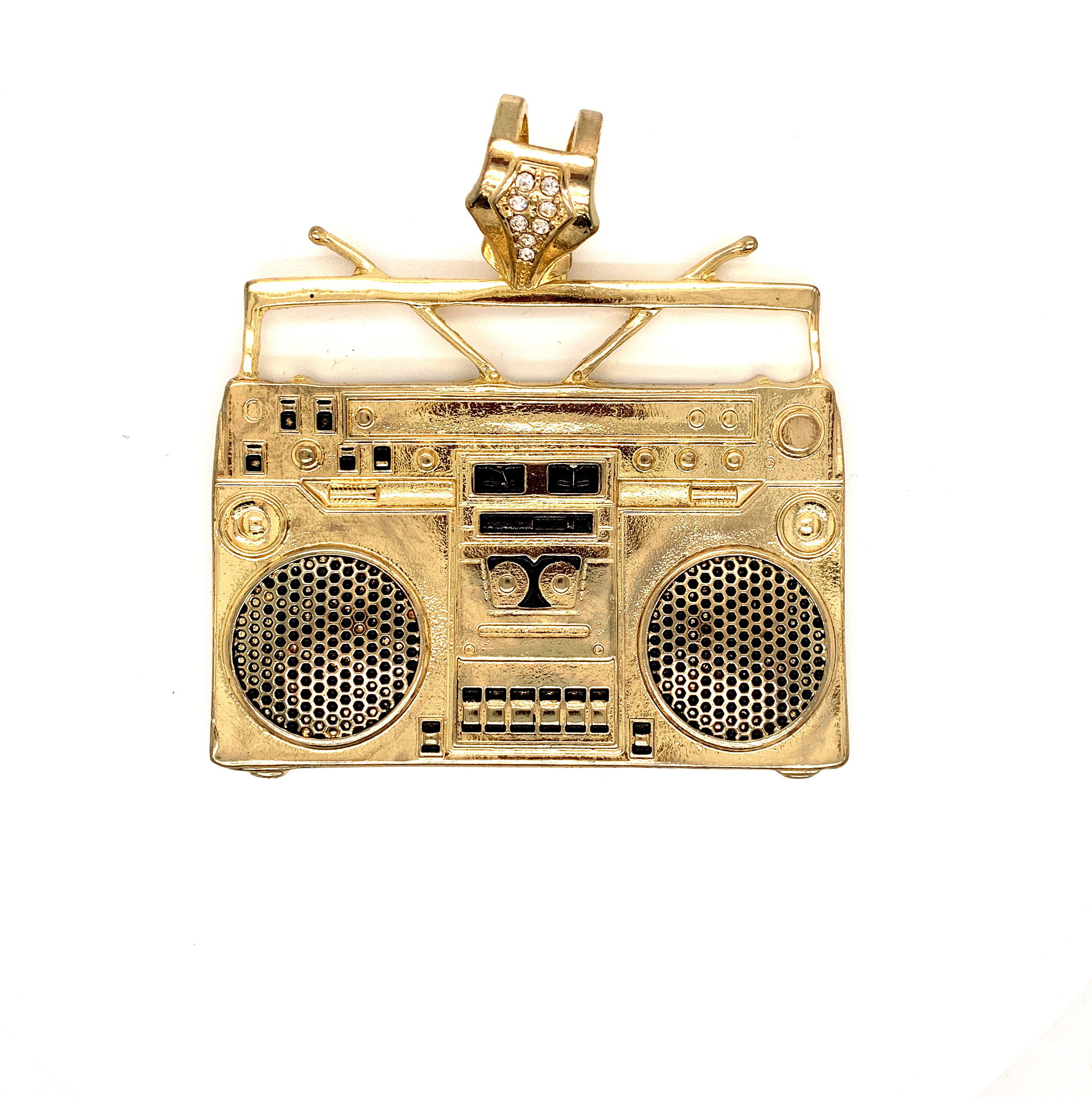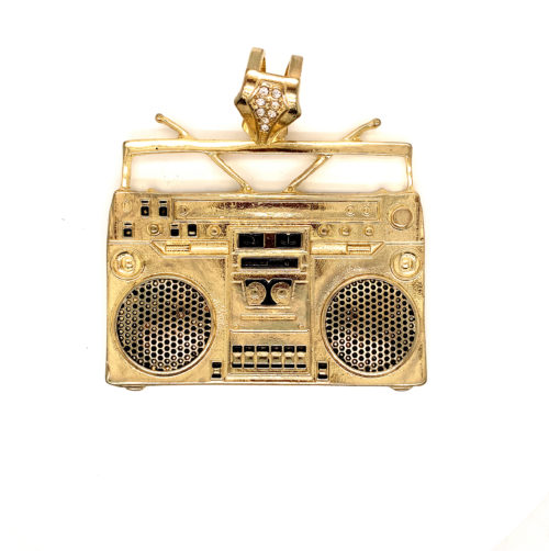 Mens Yellowtone, Boombox Hiphop CZ Pendant. 2 3/4 x 2