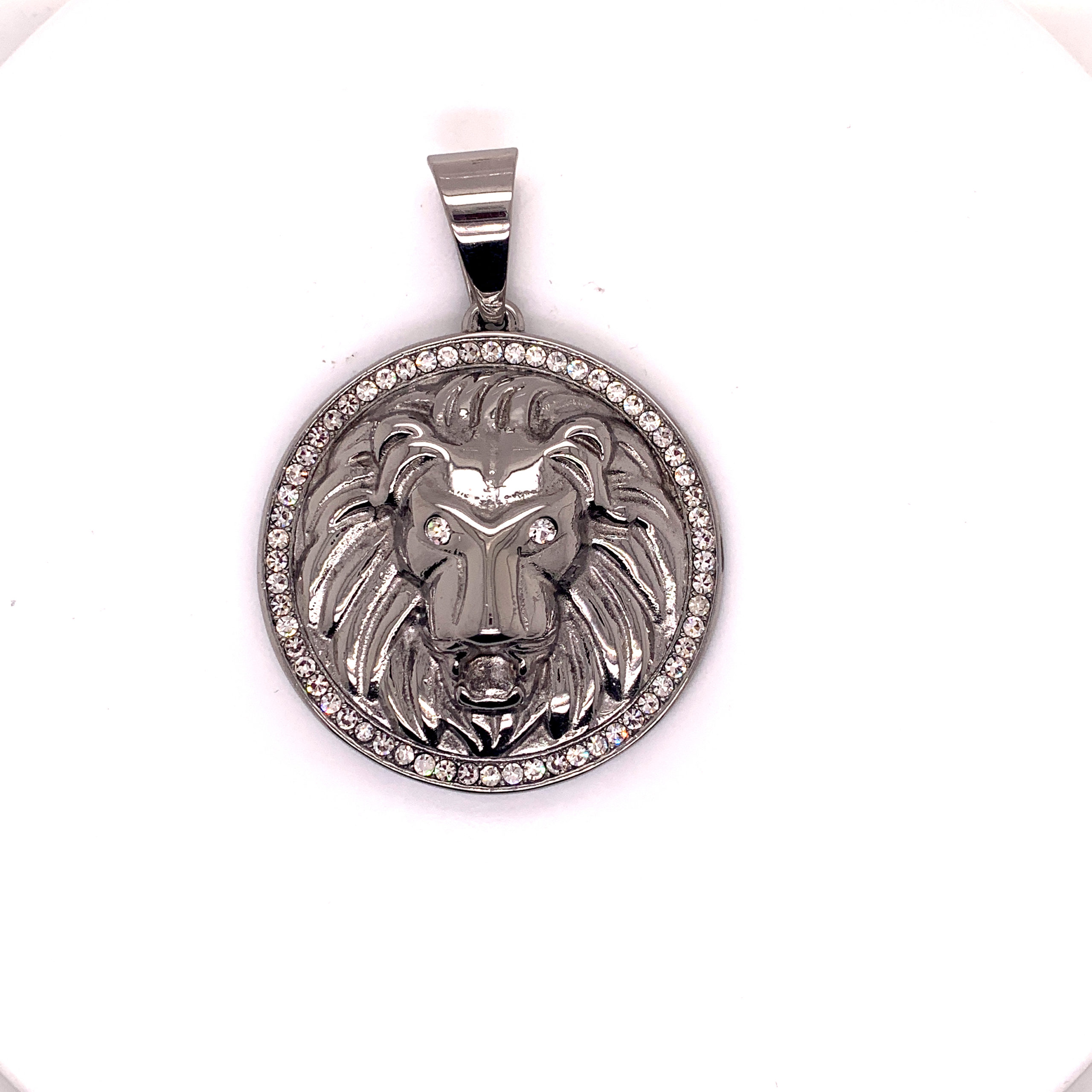Mens Whitetone, Hiphop CZ Lions Pendant. 1 3/4
