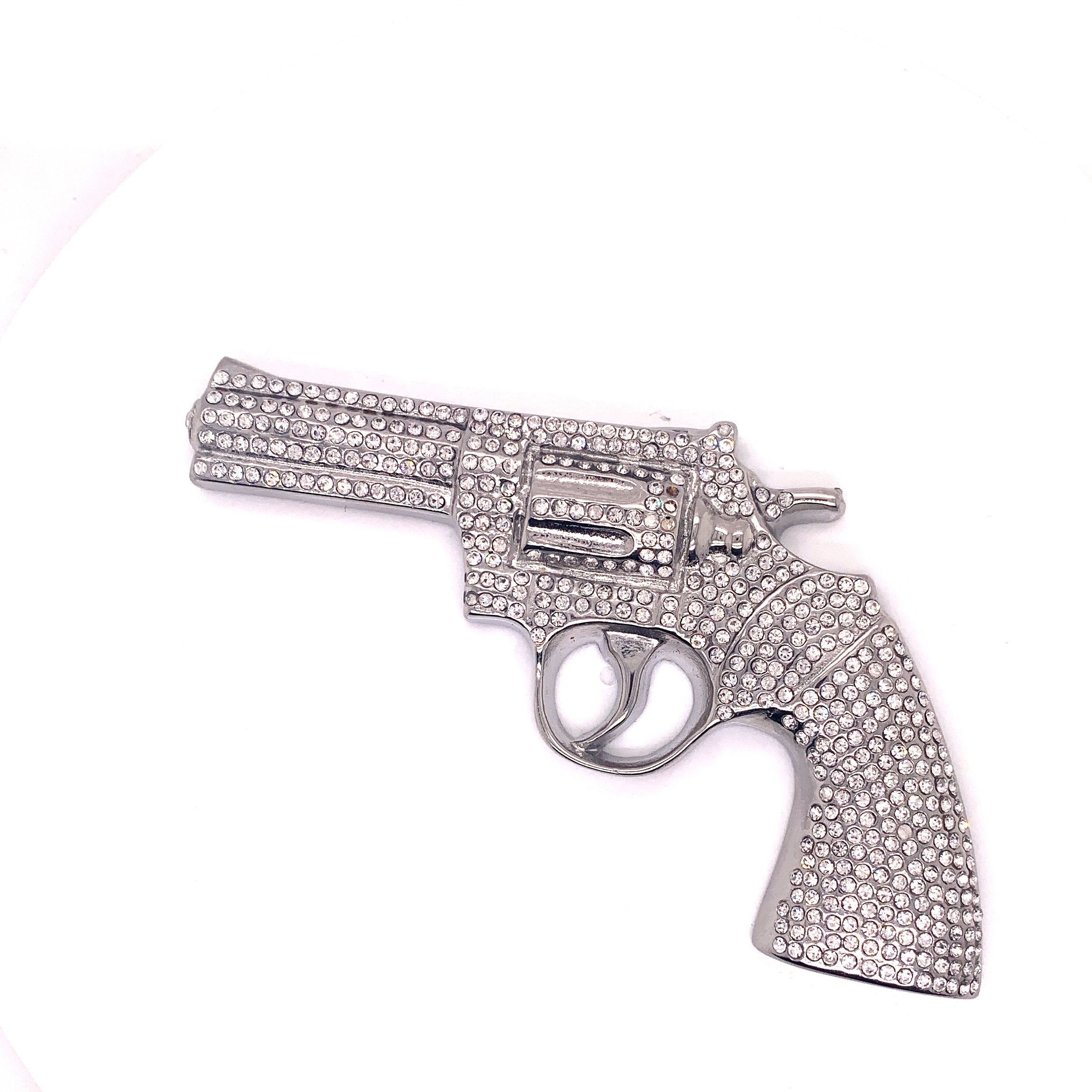 Mens Whitetone, Hiphop CZ Pistol Pendant. 3 3/4 x 2 1/4