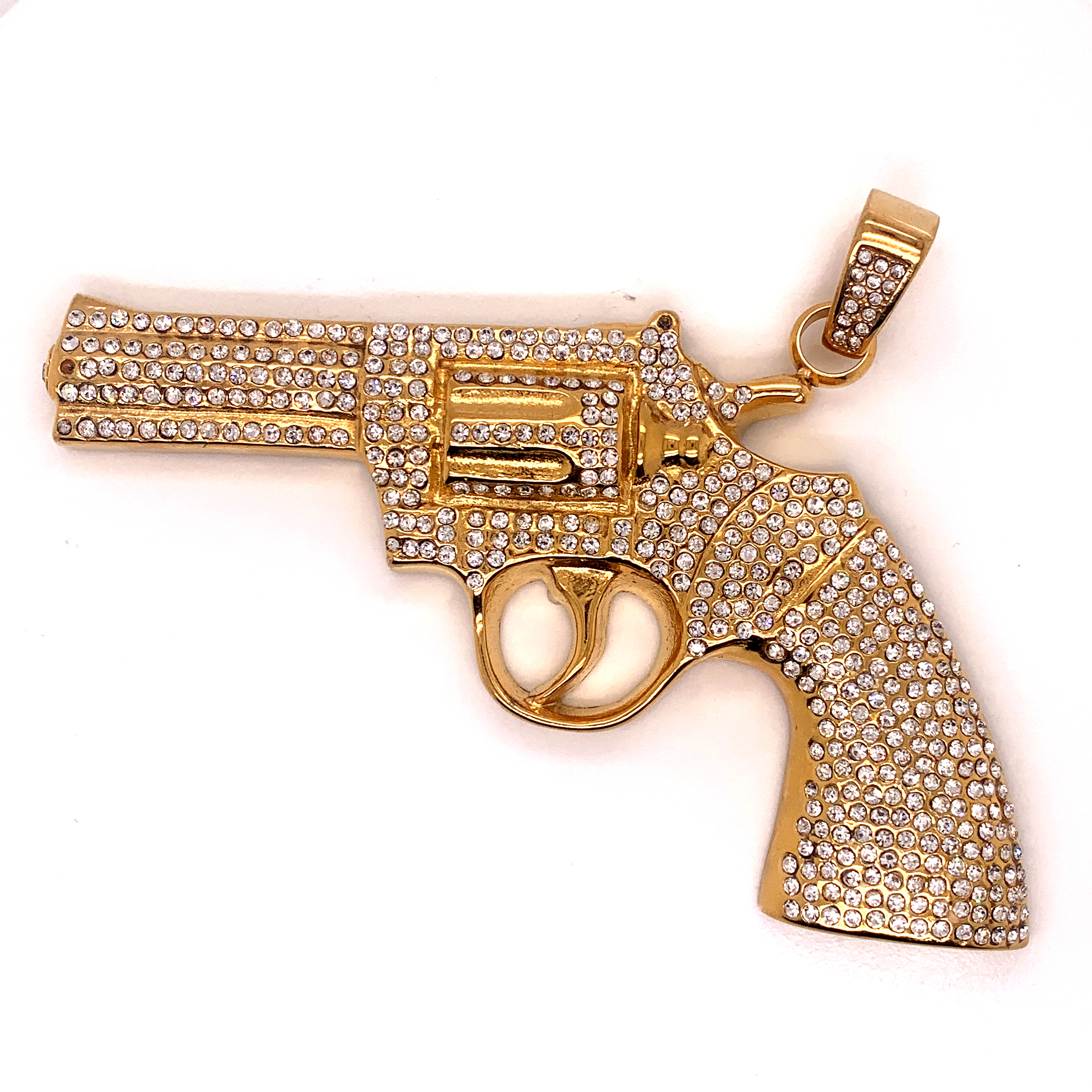Mens Yellowtone, Hiphop CZ Pistol Pendant. 3 3/4 x 2 1/4