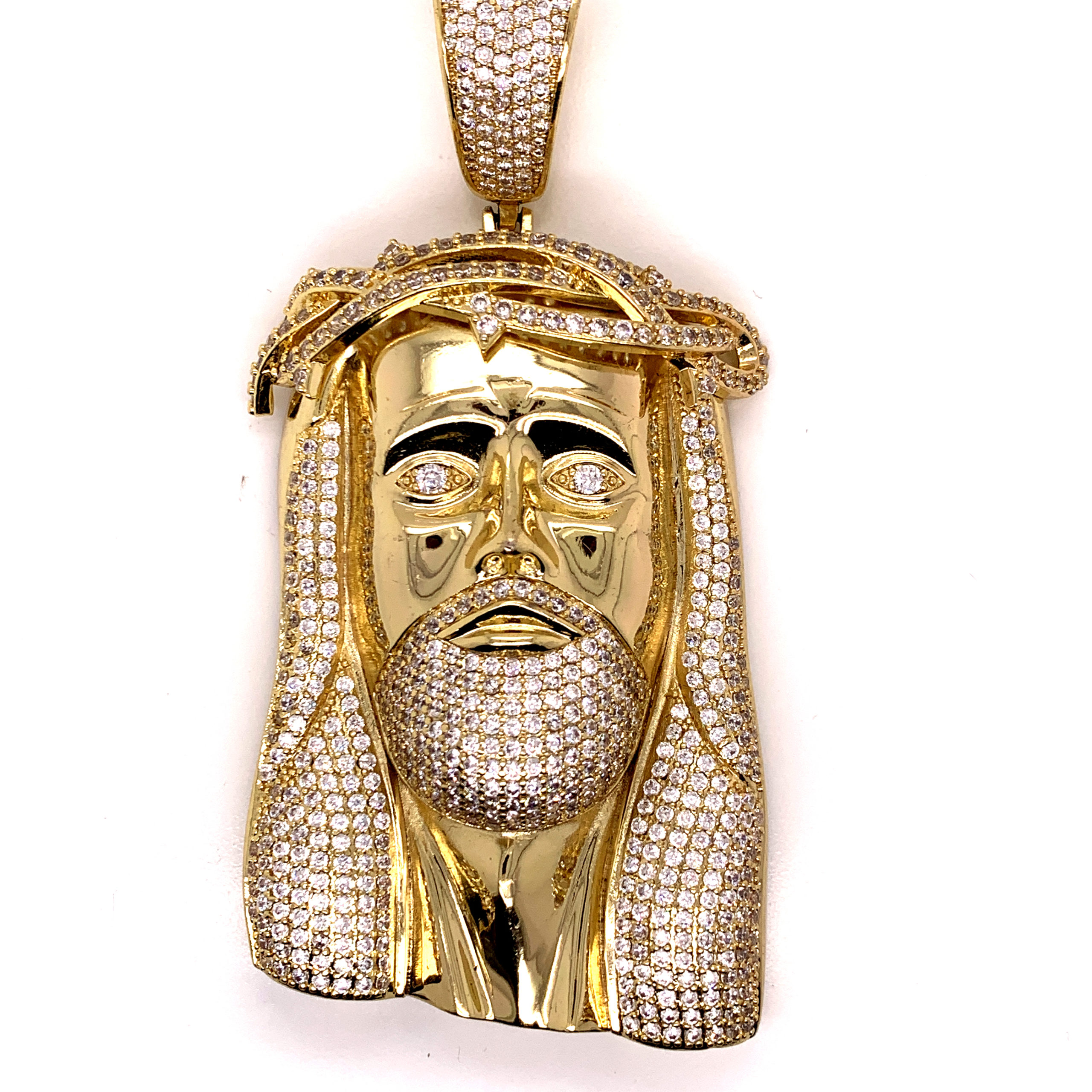 Mens Yellowtone, Hiphop CZ Jesus Pendant. 1 3/4 x 2 3/4