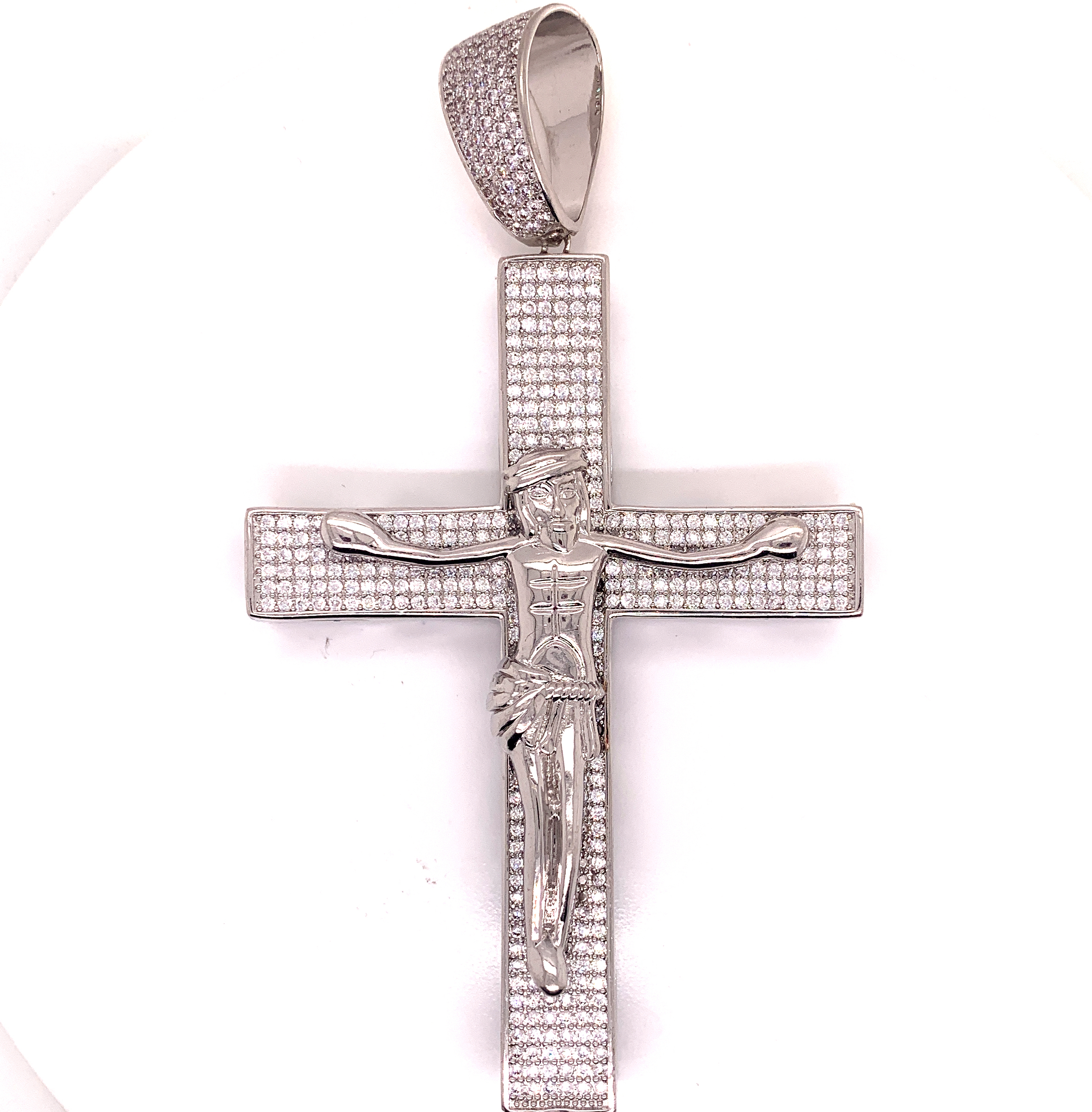Mens Whitetone, Hiphop CZ Cross Pendant. 2 1/2 x 3 1/2
