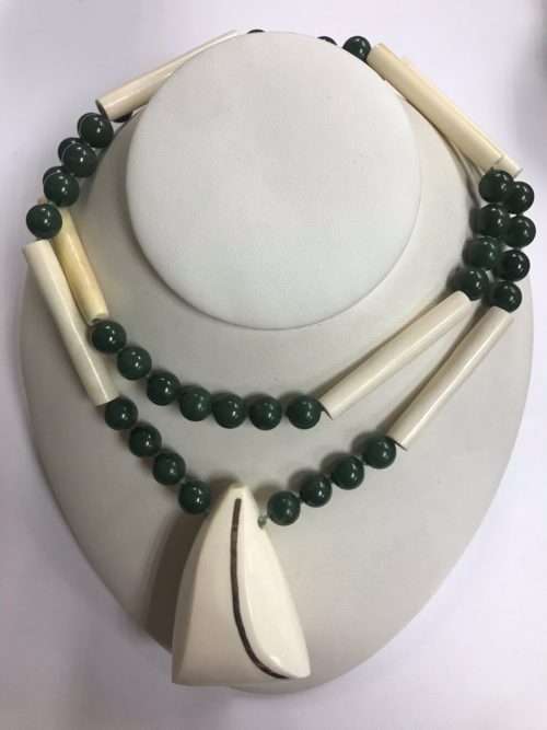 Ladies Ivory, Bakelite, And Green Jade Necklace. 30 Inches.