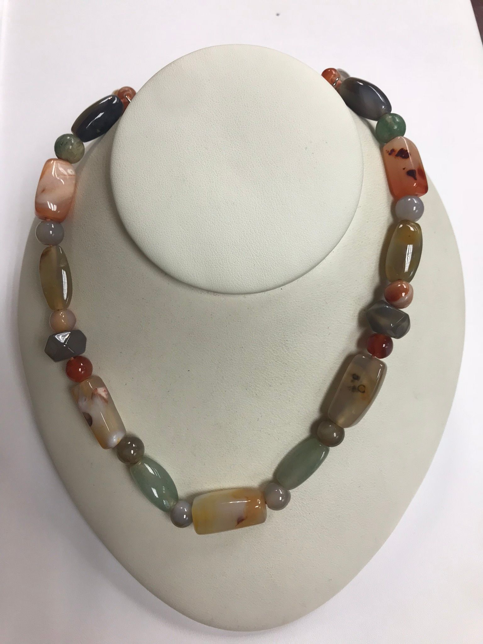 Ladies Faux Agate, Multicolored Bead Necklace. 24 Inches.