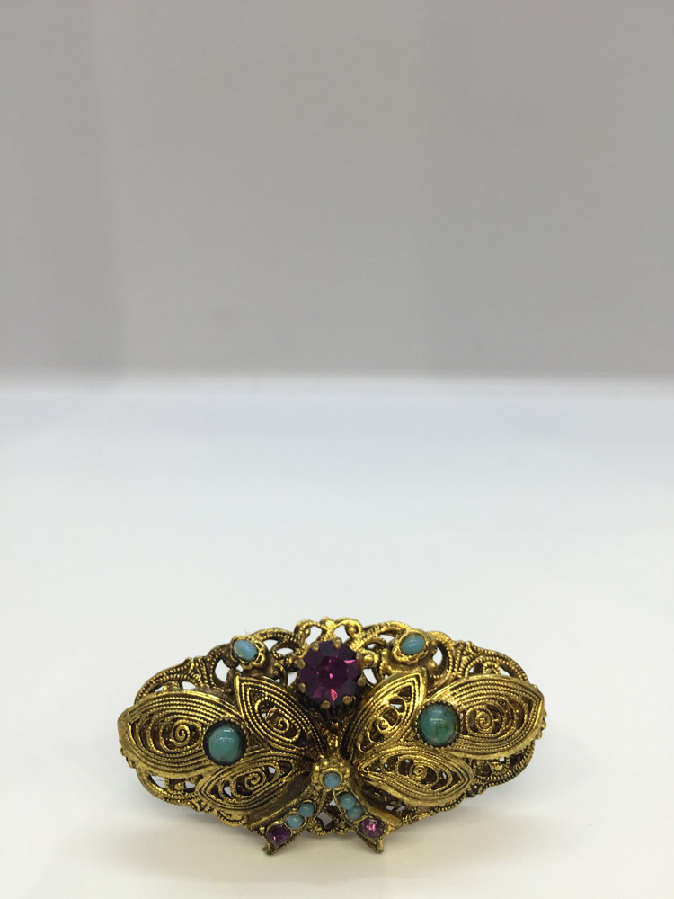 Ladies Yellowtone, Filagree, Faux Turquoise And Purple Stone Pin. 1 3/4 x 3/4
