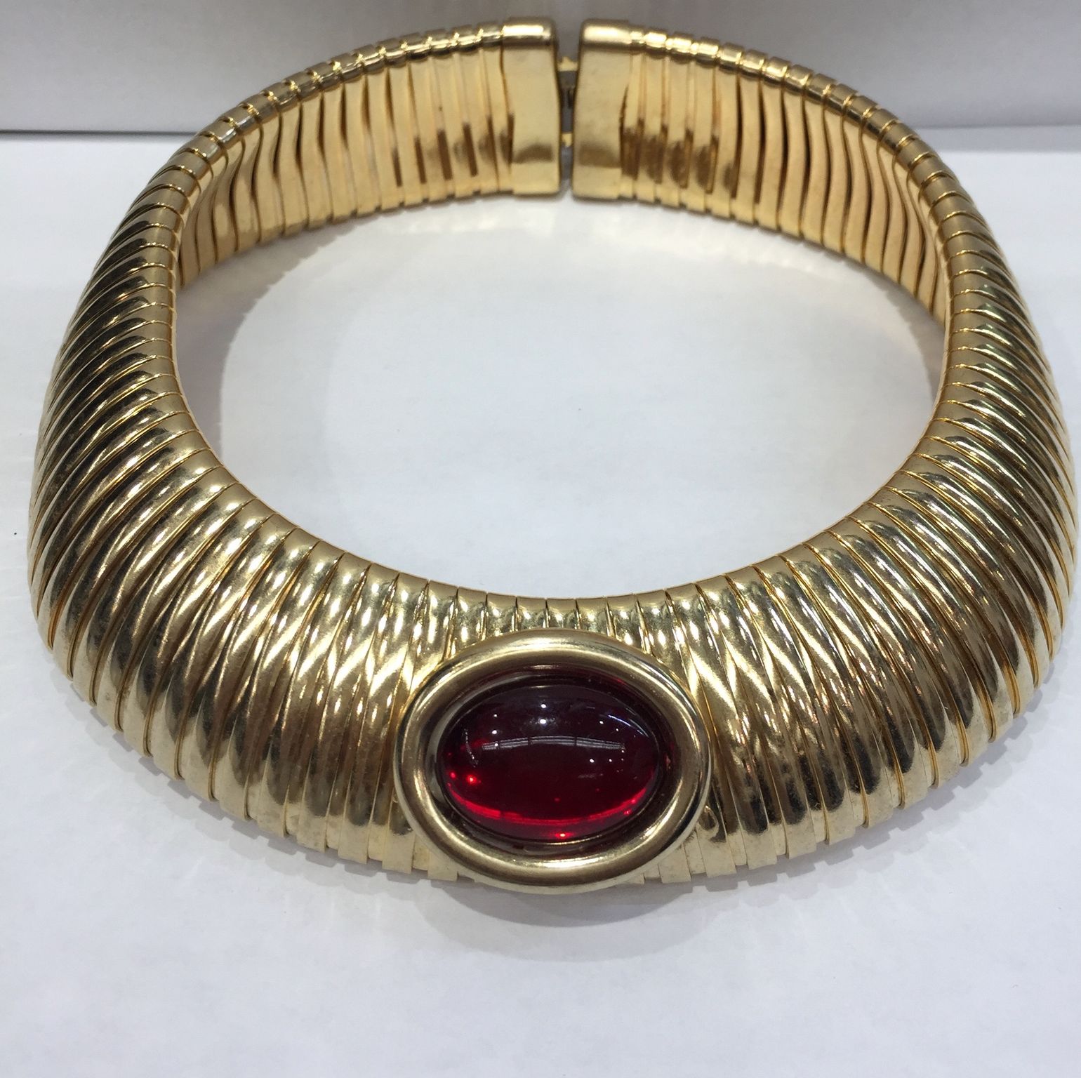 Ladies Yellowtone, Large Gooseneck Choker, With Red Glass Oval Stone. 15 Inches.