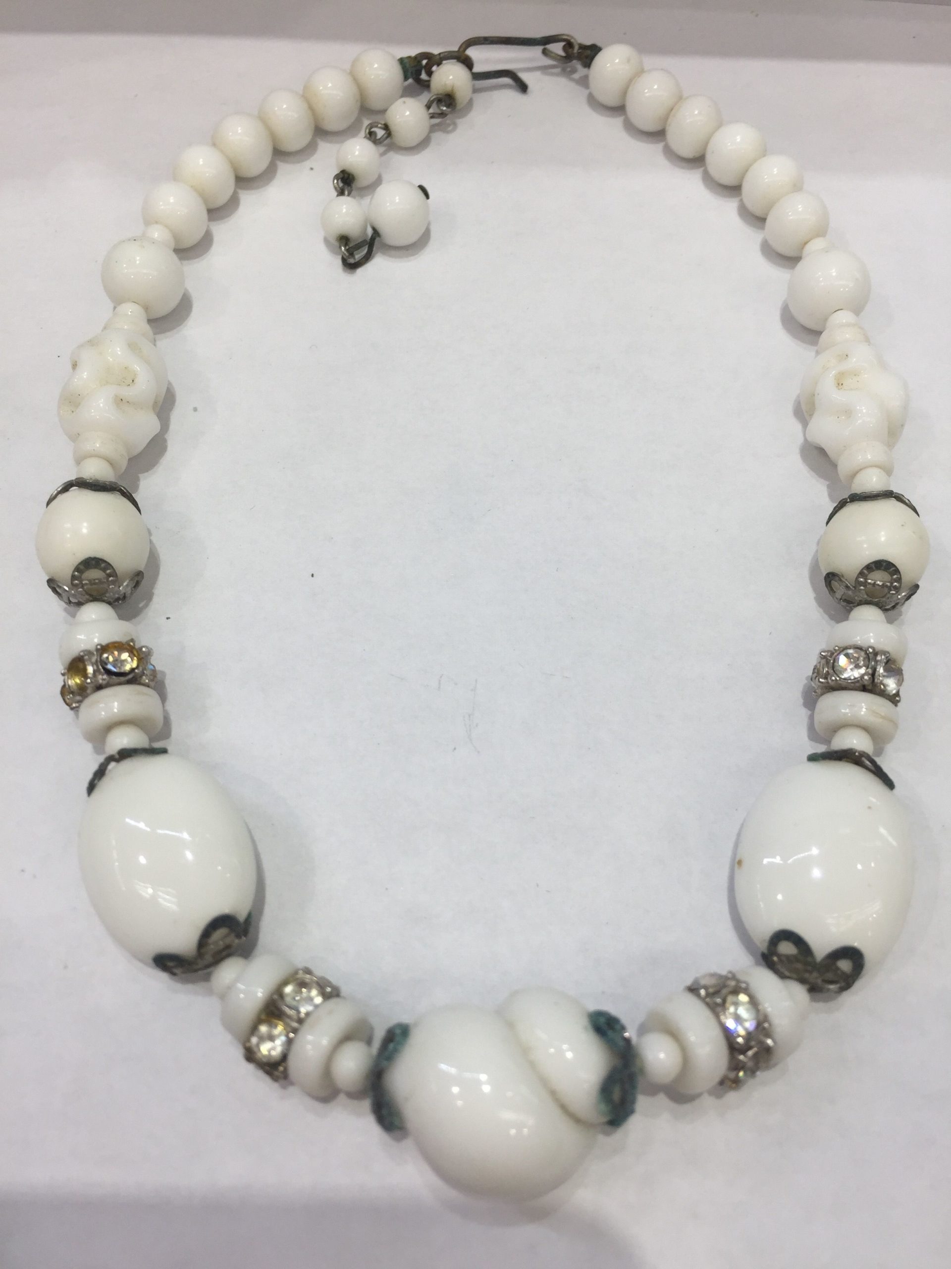 Ladies Rhinestone, Rhodelle And White Bead Necklace. 16 Inches.